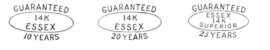 しかし純度表示が有っても、上記のような「10YEARS」などの表記がある場合はゴールドフィルとなります。これはゴールドの膜厚により耐久性が異なり、「25YEARS」であれば分厚くゴールドを張り付けて25年は下地が見えることなく使えるのを保証しているという意味になります。
