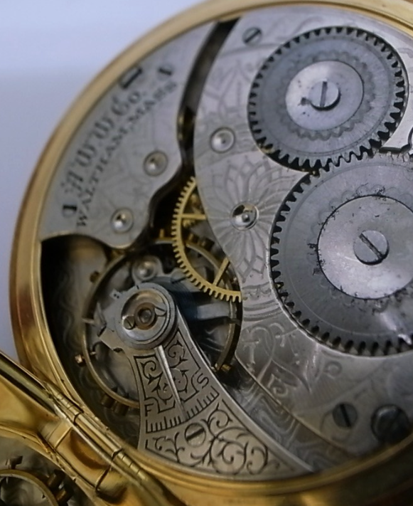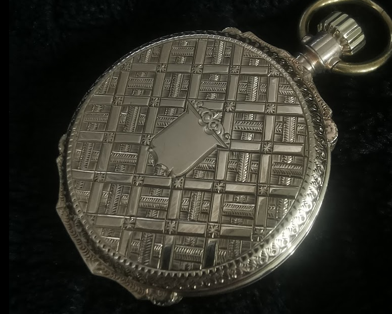 1900年頃はまだクオーツ時計も発明以前であり、腕時計では無くポケットに入れて持ち歩く機械式の懐中時計が一般的でした。贈答品としても人気があり、工業化が進んだアメリカやヨーロッパで大量に生産されました。その中でも高級機は金側(金無垢)のケースに収められ、美しい彫金が施されたものを所持するのが富裕層のステータスとなっていたようです。