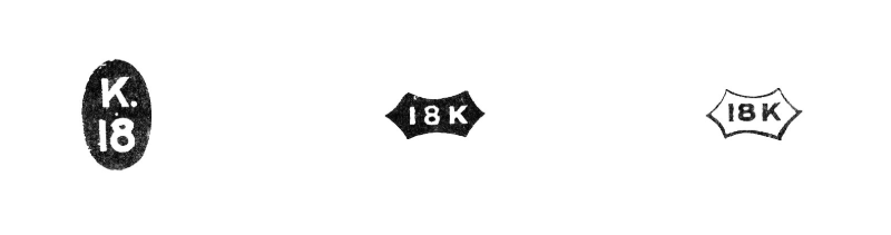 まず懐中時計のケースの種類として、ゴールド無垢、ゴールドフィル(金張り)、それ以外の金属(シルバーやステンレス)が存在しますが、貴金属としての価値があるのはゴールド無垢のみです。ゴールドフィルはゴールド以外の安価な金属に、薄くゴールドを張り付けたものでメッキよりは層が厚くなりますが、貴金属としての価値は殆どありません。しかし見た目だけでゴールド無垢かゴールドフィルかを区別するのは容易ではありません。手掛かりになるのはケースにある以下のような刻印です。